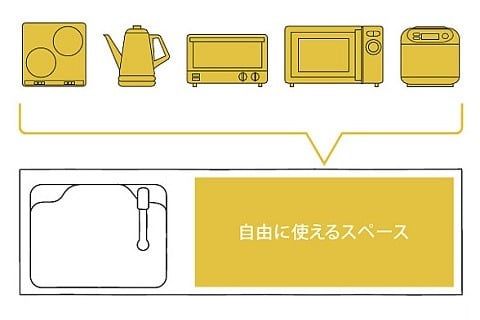 レンジを置くもよし、1口IHと電気ケトルを置くもよし。