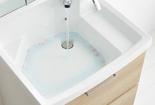 キッチンシンクで好評な流レール機能が洗面ボウルに追加されたファンシオです