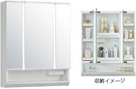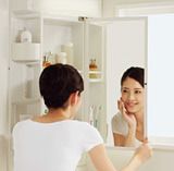 スキンケアアイテムもミラー下に収納できます