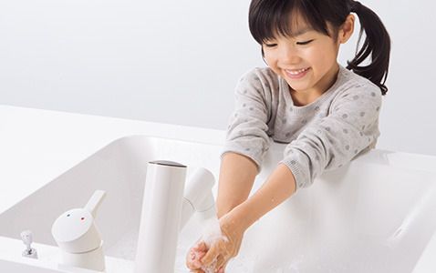お子様にも使いやすく、水栓をさわらないから清潔