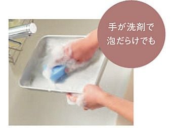 手に付いた洗剤もレバーを触らずに水が出せます