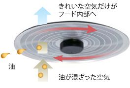 オイルスマッシャー機構がフード内への油の浸入を抑え