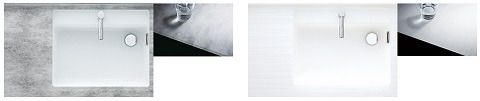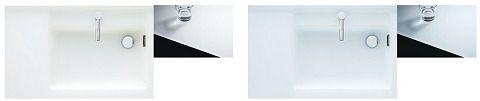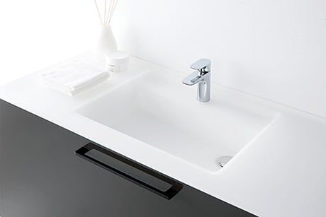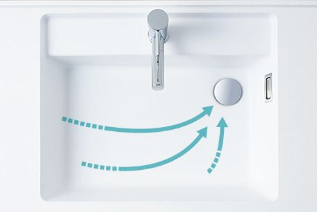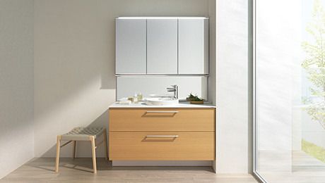 洗面ボウルを片側に寄せ、座ってもお使いいただけます。
