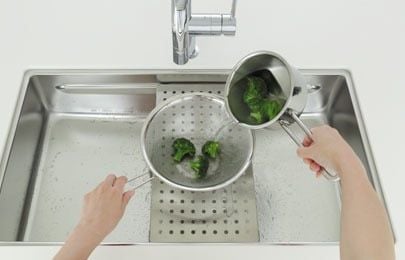 野菜やパスタなどの茹でこぼしもシンクの汚れを気にせず衛生的。
