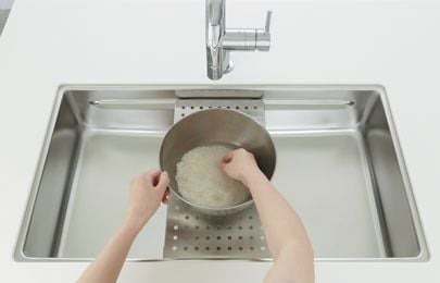 プレートの配置も自由自在に。楽な姿勢でお米もとげます。