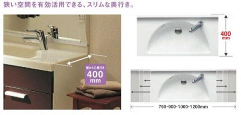 本日は限られたスペースに対応する薄型洗面化粧台を