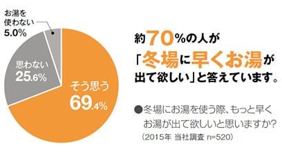 冬の朝の洗面台で なかなかお湯が出なくてイヤですよね