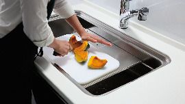 まな板を置けば、硬い野菜の調理も