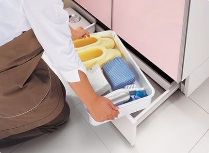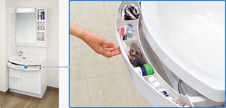 今日は タカラの洗面化粧台の便利収納をご紹介します