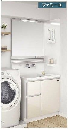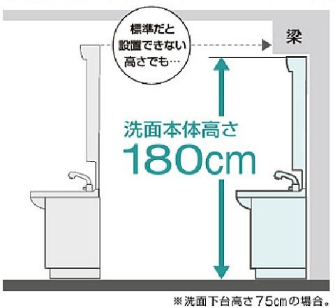 梁などの出っ張りがあってもタカラのショートミラーと洗面下台を組み合わせると