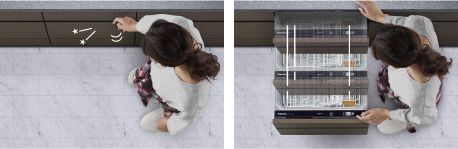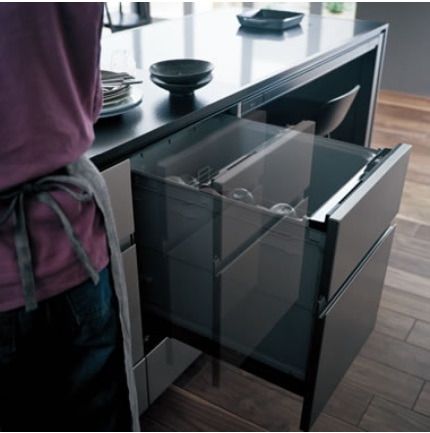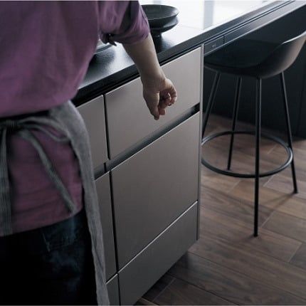 手で引き出さなくてもいいから、指先が汚れていても、食器がたっぷり入って重い時も、
