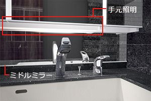 オプションのミドルミラーは背の低いお子様にも使いやすいです