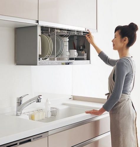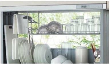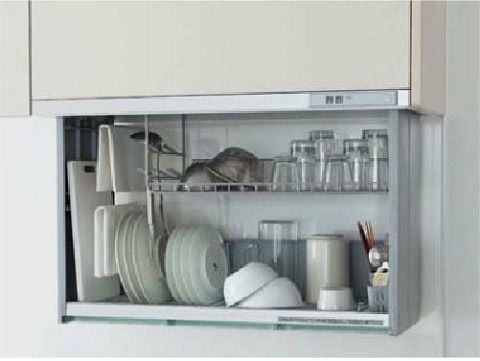 電動昇降水切りは食器類の水切りが出来ます収納にも便利な