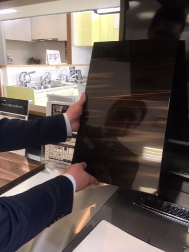 今日はクリナップのキッチンセントロの扉はタイガーアイ(虎目石)をイメージしたデザインなんです