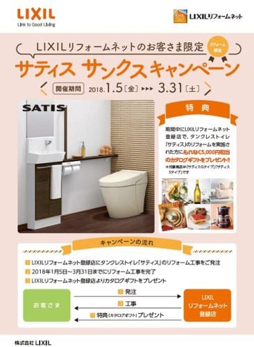 期間中にLIXILリフォームネット登録店で、タンクレストイレ「サティス」のリフォームを