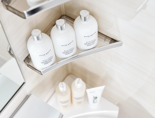 コーナーシャルフは手が届きやすい所にたっぷり置けるので使いやすいです