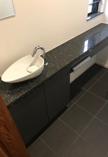 キッチン本体の天板はもちろん、それ以外の水まわり設備に採用することも可能です♪