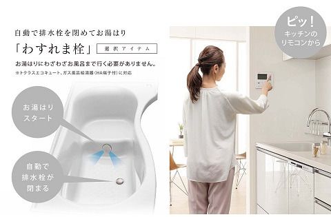 キッチンのリモコンからお湯はりスタート。その時になんと自動で排水栓が閉まるんです!