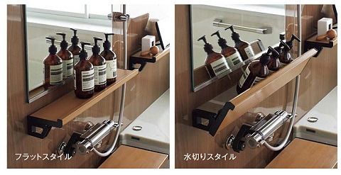 棚の使い方も2通りあって、まっすぐの棚”フラット”か、水切りしやすい”水切スタイル”か