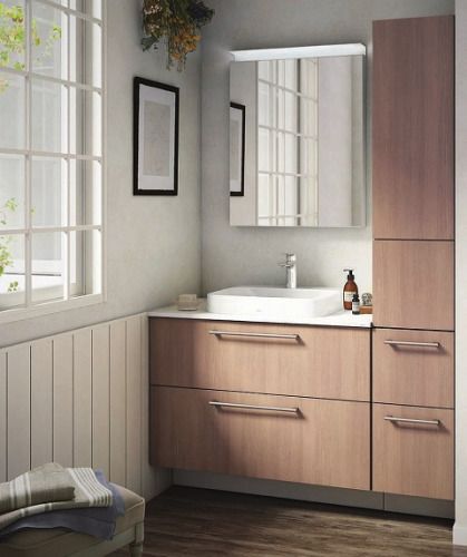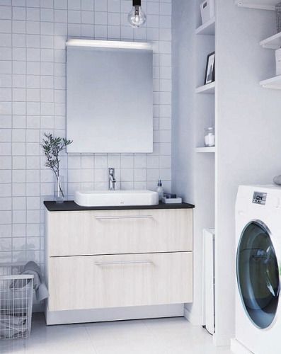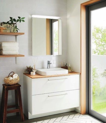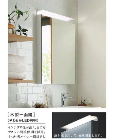1面鏡×セル化ホワイトカウンター×ベルベアッシュウッド扉