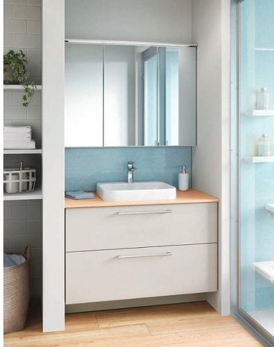 ※木製鏡には、2面鏡、三面鏡タイプもラインナップしていて、2面鏡・3面鏡には中に鏡裏収納もできます。