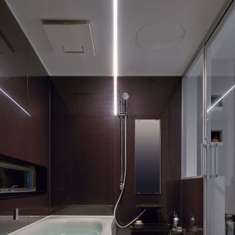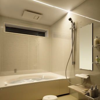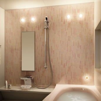 パール調の壁柄を、フラットラインLEDが照らしてきれいです