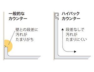 こちらが一般的なカウンターだと継ぎ目部分に汚れがたまりやすいので