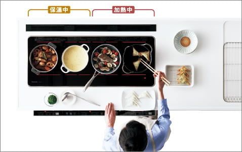 4つのお鍋を同時に加熱することができるので全ての料理をアツアツで