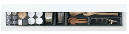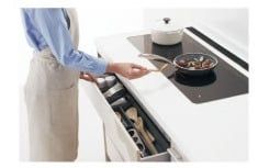 調理中に使う小物もワンプッシュで開く扉の中に収納できるので
