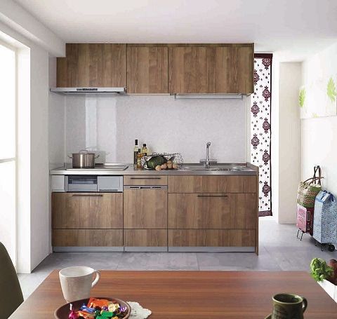 ※一般的なシステムキッチンは、木製キャビネットが多い