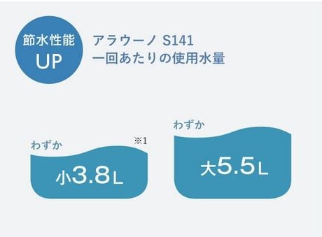 1回の使用水量は、大5.5L、小3.8L ※以前は大5.7L、小4Lでした
