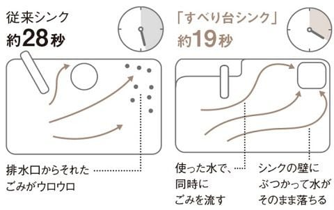 どんどん排水口に向けて流してくれる。おどろきのシンクです