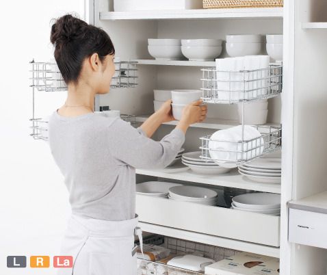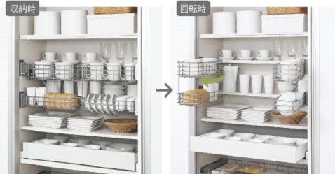 「回転アミカゴ」付食器収納は回転アミカゴが開くので