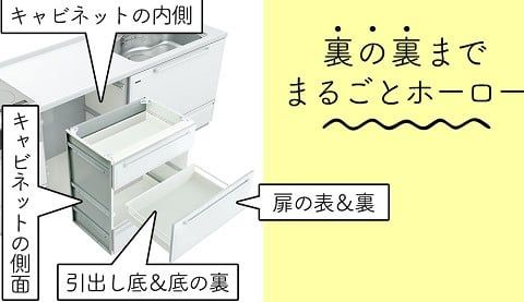 洗剤などの液ダレが付いても、染み込まないので、