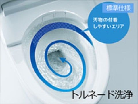 渦を巻くようなトルネード洗浄が、少ない水で効率的に洗浄します