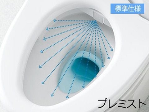 自動で便器にミストをふきつけて水のクッションを作り、汚れをつきにくくします