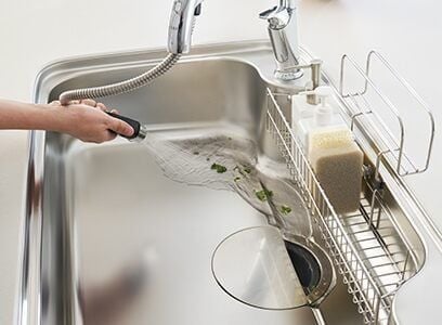 シンク内のゴミや汚れをすばやくキレイに流せます