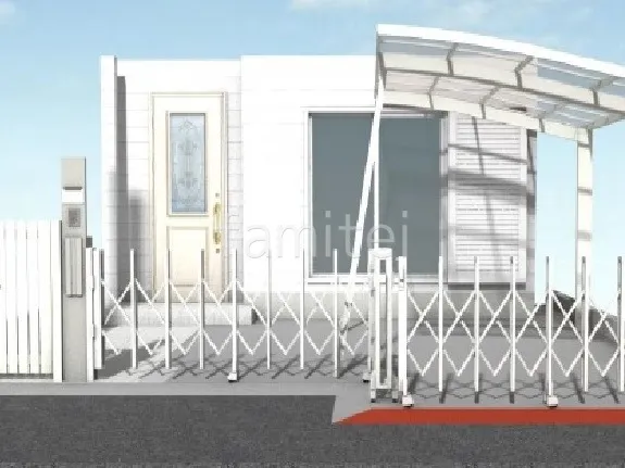 既存のブロック門柱を撤去し、機能門柱に変更。玄関門扉に四国化成のテネシーN1型親子両開き、車庫前には変形納まり専用の伸縮門扉、YKKAP レイオス5型を採用し、色味をホワイトに合わせることで、シンプルで清潔感ある門まわりとなりました。