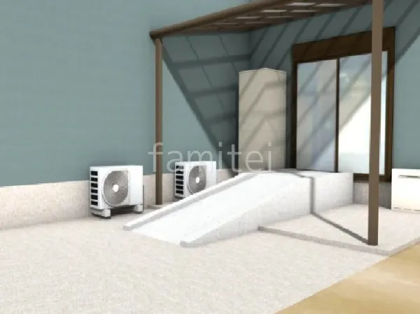 車いす用のスロープをお庭掃き出し窓前に設置しました。両サイドを少し高めに設計することで、落下事故を防止します。