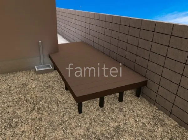 人工木ウッドデッキ YKKAP リウッドデッキ200を設置しました。人工木なので天然木よりもお手入れが簡単で、色あせも少なく、キレイな見た目が長続きします。