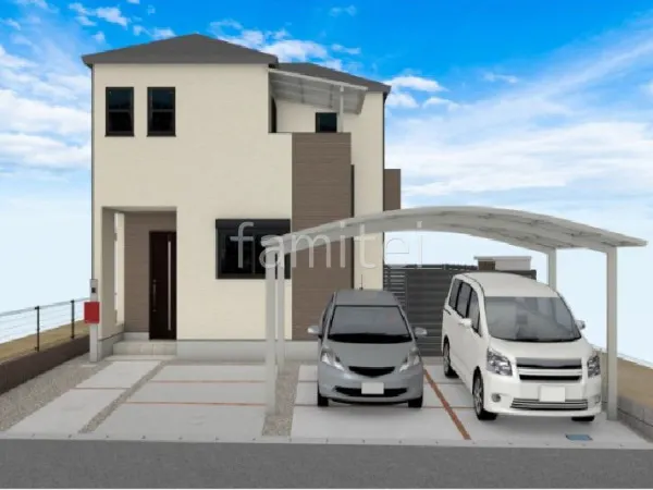 駐車スペースにカーポート YKKAP アリュースツイン を施工しました。また、駐車スペースとアプローチの間土間コンクリートを施工し1台分の駐車スペースを配置しました。お庭などのプライバシー確保にF&F マイティウッド デコIIを施工しました。木製調の温もりが感じる目隠しフェンスです。