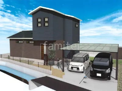 玄関アプローチには、石英岩の質感と色合いを再現したユニソン ティーナを敷きました。門柱には、郵便受けや照明、インターホンなどが一体化されたルシアスポストユニットHB01型を施工しました。カーポートには、エフルージュ ツインFIRSTを設置しました。お庭には、手入れが簡単な人工芝と、人工木デッキ 樹ら楽ステージを施工しました。犬走のジャミ敷きとカーポートの土間コンクリートとのコントラストが美しいです。これらの素材とデザインで、ベーシックでモダンな外構に仕上がりました。