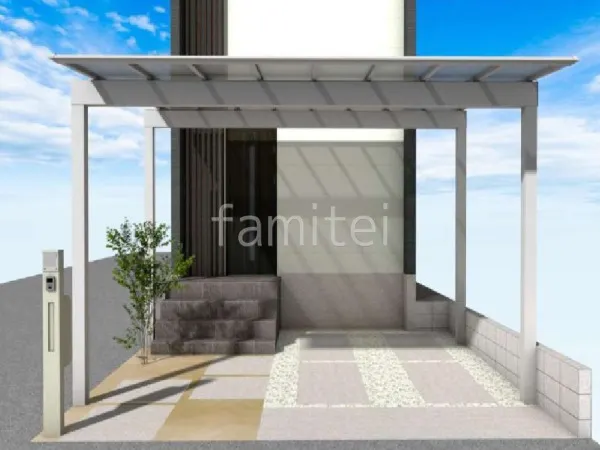 スタイリッシュなカーポートとお庭に開放感が魅力的な新築ベーシック オープン外構
