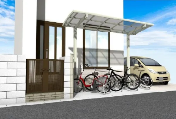 塀と花壇を撤去し、土間コンクリートを敷きました。自転車の出し入れが容易になり、ストレスフリーで使えるように! 自転車を気にすることがなくなり、車の駐車も楽に行えるようになりました。 コンパクトな機能門柱のリクシル アクシィ1型と、同じリクシルのサイクルポートを設置しています。