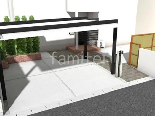 玄関アプローチにタイル タカショー セラレバンテを貼り、石目調のタイルでモダンかつ自然な仕上がりになりました。駐車場スペースにはLIXIL カーポートSC 横2台用を設置し、雨の日でもゆっくり車に乗り降りする事が出来ます。見た目にもスタイリッシュなアルミ屋根カーポートで外観も都会的です。