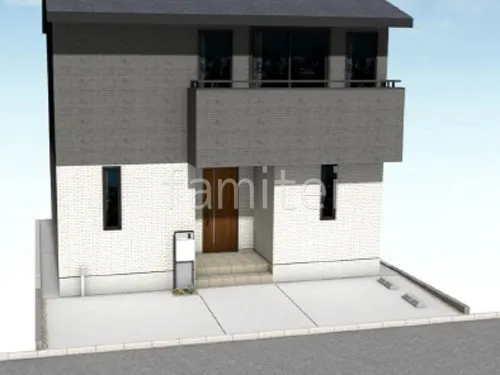 機能門柱はLIXIL FS。ノイズが少なくシンプルでスタイリッシュな機能門柱です。玄関前の駐車場スペースは土間コンクリート打ちにし、人が歩きやすく車も出入りしやすい仕上がりに。犬走り部分も土間コンクリートを打っていますので、雑草の心配はありません。