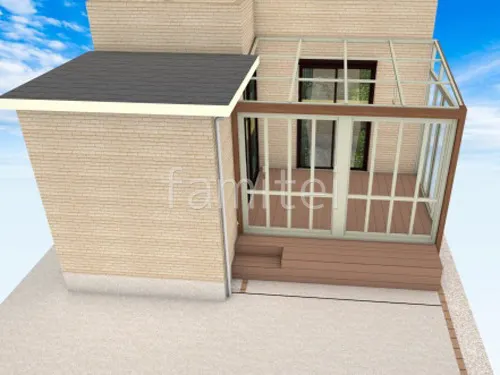 お庭にLIXIL ガーデンルームGF インナーデッキ仕様を設置しました。木目調のガーデンルームとウッドデッキの優しい質感が、お庭をナチュラルに彩ります。ステップデッキも設置しており、外に出やすくなっています。