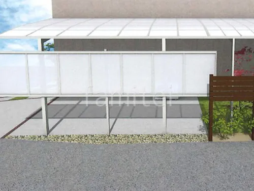 既存のカーポートに延長する形でYKKAP アリュースベーカを設置しました。屋根面積が広がることで使い勝手が良くなります。地面には人工芝を敷き、一年中青々とした芝生を楽しむ事が出来ます。