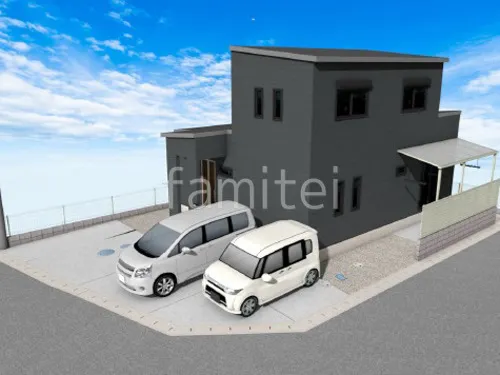 テラス屋根で雨除けする新築ベーシック オープン外構