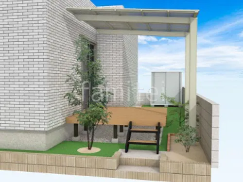 屋根、ウッドデッキ、人工芝のお庭リフォーム